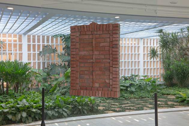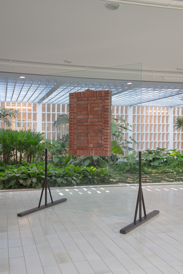 Em paralelo à individual de Regina Silveira, a Luciana Brito Galeria apresenta, na sala da casa - living, uma instalação inédita de Leandro Erlich (Buenos Aires, 1973), Blind Window. A peça, composta por uma parede de vidro onde se encontra uma janela completamente fechada por tijolos, ganha novas camadas interpretativas ao ser instalada na Luciana Brito Galeria: a casa que agora abriga a galeria pertence à série de residências intimistas de Rino Levi, em que a paisagem era trazida para o interior do espaço doméstico, revertendo a ideia de “vista” e aproximando a contemplação da interioridade.