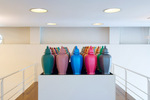 Finalmente, The Shapes Project pode gerar uma identidade gráfica distinta para toda a população mundial. Usando seu computador doméstico e o programa Adobe Illustrator, o artista combina 300 opções de partes de cima, do meio e de baixo, formadas por uma série de curvas e contornos, e as reúne em grupos de quatro a seis para criar cada forma. The Shapes Project é capaz de criar 31 bilhões de formas diferentes (o suficiente para abastecer confortavelmente a população mundial em seu esperado pico, em 2050, estimado entre 8 e 20 bilhões de pessoas). Até agora, 214.000.000 de formas foram “retiradas para a experimentação criativa”, diz o artista. Para a exposição, o artista propõe novas peças em madeira.