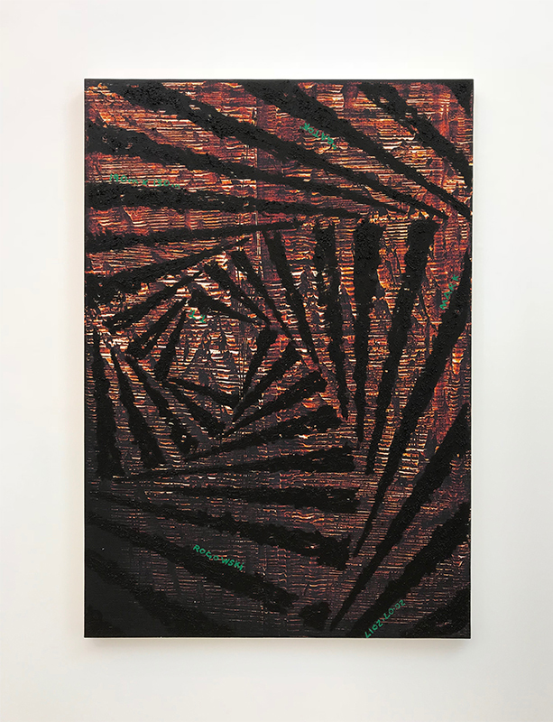 Em sua terceira individual na Luciana Brito Galeria, Tiago Tebet apresenta uma seleção de sete pinturas de dimensões variadas e uma escultura, todas de 2017. As obras têm em comum – entre si e com sua produção anterior – o fato de dialogarem tanto com a cultura popular, em particular da periferia de São Paulo, quanto com elementos arquitetônicos. Formalmente, são unificadas por seu processo criativo, o qual utiliza a destruição e a desconstrução como técnicas construtivas.