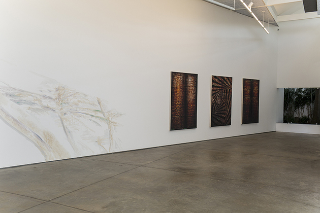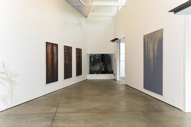 Mais que uma pesquisa temática ou de cor, essas pinturas revelam uma dedicação ao processo performativo de produção pictórica, o qual demanda do artista entrega e abdicação do controle sobre o resultado final. A exposição agrupa obras criadas a partir de dois procedimentos essenciais. Um dos grupos é construído a partir do preparo da tela com massa (de uso para construção civil), à qual são sobrepostas inúmeras camadas de tinta de diferentes cores, que são subsequentemente lixadas. O processo pode se repetir tantas vezes quanto for necessário. Camadas são adicionadas com o intuito de posteriormente serem escavadas, em um processo misterioso que remete à arqueologia de um tempo presente, à construção de uma ruína.