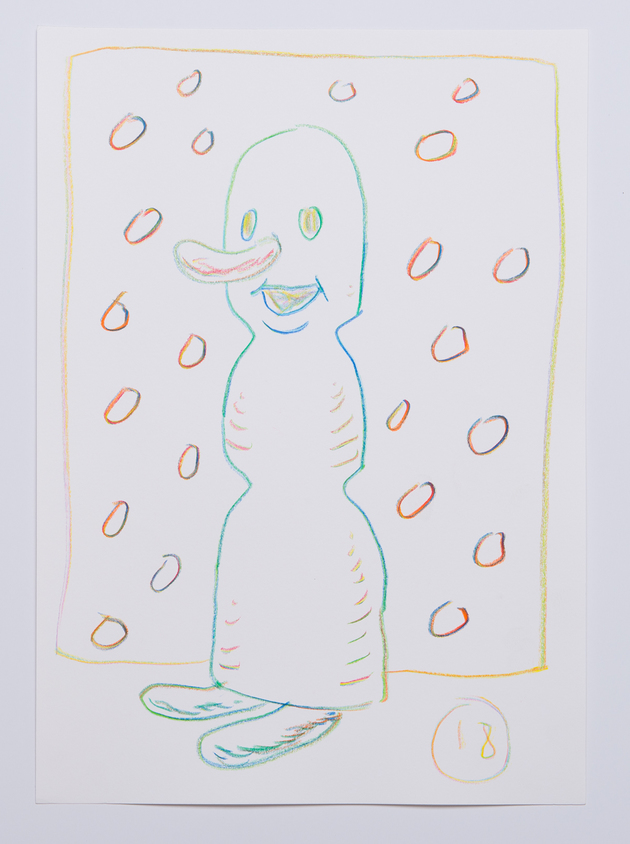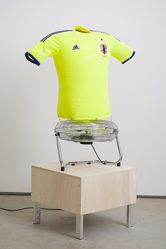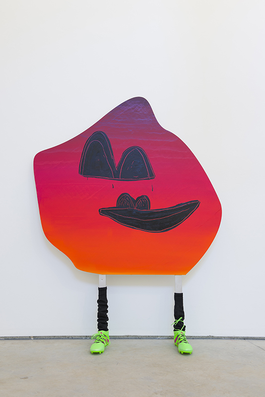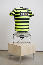 Dividida em dois momentos, aqui now here agora nowhere irá incluir pinturas, escultura e ready-mades, refletindo simultaneamente a coesão de seu léxico visual e a versatilidade técnica do artista. Em comum, as obras contêm em si o gosto do artista pelo encontro irônico de elementos inusitados capaz de gerar novas leituras e significados. Mais que tudo, e como o título denota, as obras reunidas na exposição são profundamente calcadas em um comentário sobre o que é o mundo, e mais particularmente o Brasil, do aqui agora: uma sociedade onde o aspecto ritualístico de objetos carregados de valor simbólicos não se distingue mais da banalidade de linguagens virtuais; um Brasil às vésperas de mais uma Copa do Mundo, momento que inevitavelmente nos leva a pensar no que era o agora de quatro anos atrás e em tudo que mudou desde então.