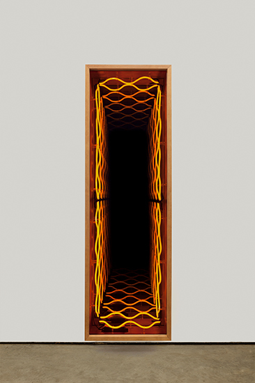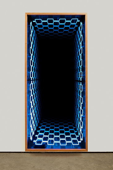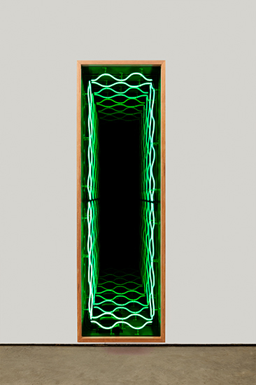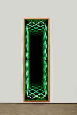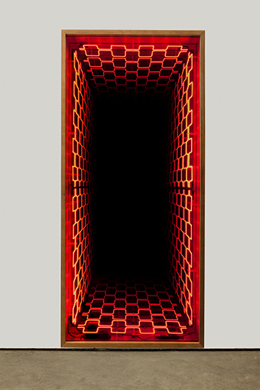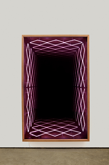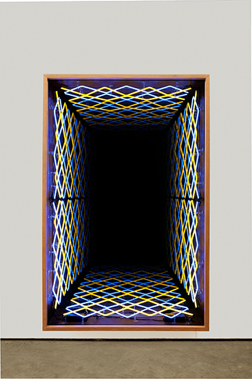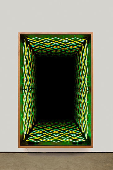 “Desvanecer” é a segunda exposição individual de Iván Navarro na Luciana Brito Galeria e apresenta uma instalação de néon na parede principal do espaço expositivo. Luzes e cores atraem nossos olhares e despertam os sentidos para um espaço simbólico infinito. A ilusão de perspectiva se dá através dos “pontos de fuga”, colocando-nos diante da incerteza do que é de fato real. Dessa forma, o que vemos é um paradoxo aparente, onde a geometria provoca a sensação de aumentar o ambiente, ao passo que engole qualquer imagem disposta na sua frente, fazendo desaparecer, desvanecer.