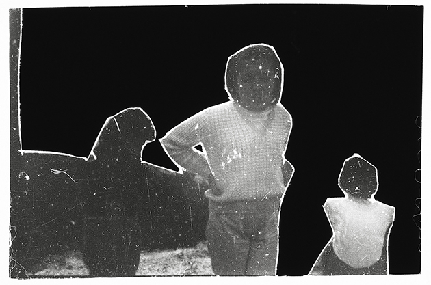 “Sobras” foi concebida por Geraldo de Barros no final de sua produção. A partir de material remanescente de sua própria história, como fotografias da família e negativos antigos, entre os anos de 1996 e 1998, o artista reconstruiu e criou novas narrativas com colagens e interposições. Subdividida por categorias formais (colagem e vidro), “Sobras” representa a síntese da arte de Geraldo de Barros, não apenas porque combina o conhecimento, a maturidade e o primor adquiridos pelo artista ao longo de suas experiências, mas principalmente porque condensa todo o potencial que Geraldo de Barros acreditava ser possível manifestar através da fotografia, ou seja, verdade, emoção e expressão. Essa derradeira experiência reúne, ainda, o repertório estético concreto-construtivista que tanto impulsionou o fazer artístico de Geraldo e permeou grande parte de sua pesquisa.