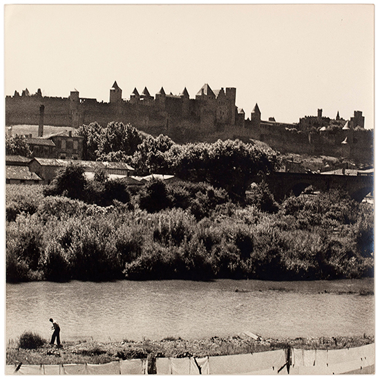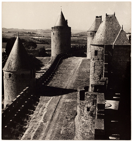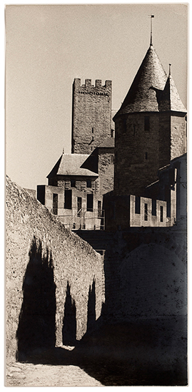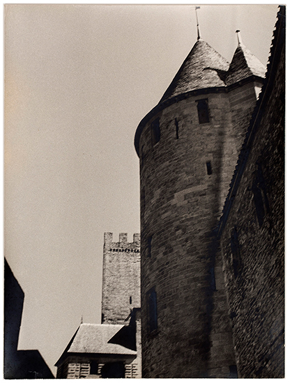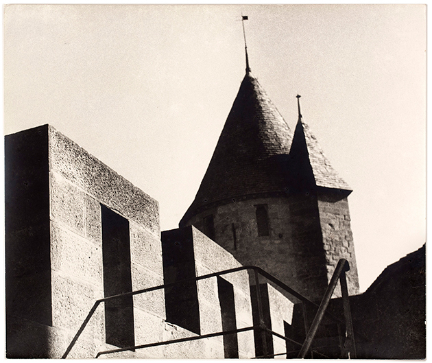 Já as fotografias da série “Carcassonne”, foram realizadas entre 1951 e 52, período em que o Geraldo de Barros morou na França. Esta viagem se mostrou o cenário ideal para os experimentos do artista, que realizou diversos registros, principalmente do castelo condal, construído ainda pelo Império Romano e atualmente Patrimônio Mundial da Unesco. Geraldo de Barros mudou-se para a França, em 1951, por meio de bolsa de estudos em reconhecimento da importância da exposição “Fotoformas”, que aconteceu no MASP, em 1949.
