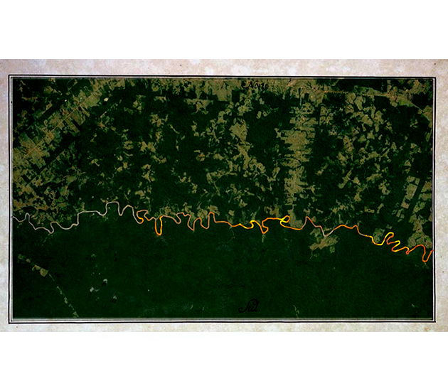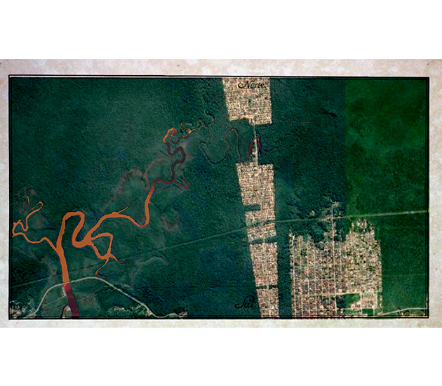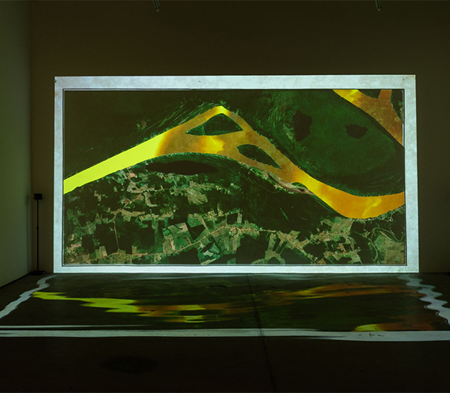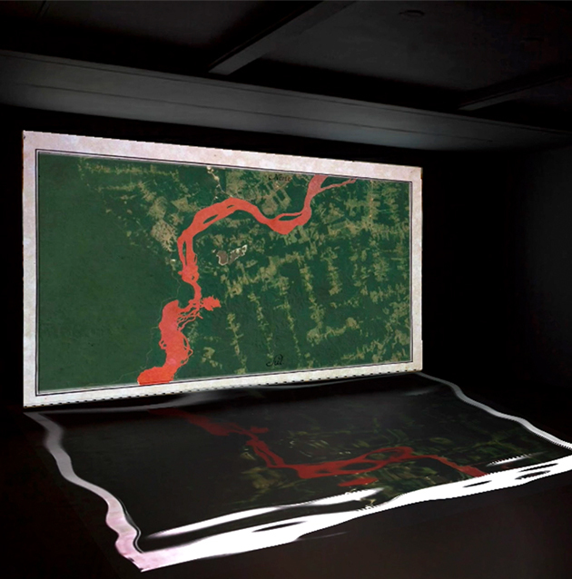A artista bianca turner esta presente na mostra com três trabalhos. O video Encobrimento, localizado na adega da casa, em seu subsolo, narra um mito babilônico de Pherecydes de Syros sobre a cerimônia de casamento entre Céu e Terra, sobrepondo cartografias do período da colonização portuguesa em terras ameríndias, no qual o processo de territorialização é percebido como um principio e uma ação vinculada ao patriarcado, e a apropriação da Terra relacionada à dominação masculina sobre o corpo da mulher, silenciando sua natureza original e renomeando sua superfície através de imposições. A mesma pesquisa cartográfica resultou no trabalho ecos, realizado em parceria com o artista sul-africano Neo Muyanga, uma instalação audiovisual inédita que conclui a exposição no final do pavilhão da galeria (para esse trabalho escrevi um texto separado, disponível próximo à obra). Ainda no pavilhão, a obra Palingenesia - palavra que vem do grego palin (muitas) e gênesis (nascimento) - alude à ideia de reencarnação; composta por um carrossel de slides vazios que projetam apenas luz na parede em um ritmo continuo, simultâneo a uma segunda projeção que sobrepõe a moldura iluminada com a imagem de um coração humano pulsando, o qual pode ser visto nas transições de um slide para outro. O som amplificado dos batimentos cardíacos reforça a força da natureza dentro de nossos corpos.