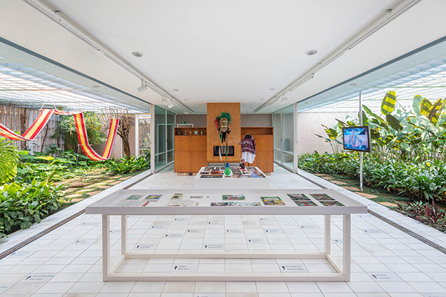 Em 1962, Rachel Carson publicou um livro, Primavera Silenciosa, sobre os efeitos nocivos da poluição agroquímica que, além de seus estudos científicos, criou uma alegoria que vislumbrava como as ações e comportamentos sociais afetam os ciclos da natureza. Essa publicação dá título a esta exposição, que tomando como ponto de partida a visão de Carson, articula três eixos. Um central, que trata das diversas formas como os artistas falam sobre assuntos sagrados, preservação e regeneração diante do caos e dos desastres ambientais, ao mesmo tempo que o onírico se faz presente como forma de ver o invisível. Aqui, o conhecimento transmitido oralmente de geração em geração encontra forma de manifestação na prática da arte. Devido ao contexto de suas experiências, esses artistas tendem a desenvolver obras com notável densidade simbólica e suas pesquisas revelam componentes de importância histórica ao registrar suas ancestralidades e suas relações com o meio ambiente. O segundo eixo aborda questões de exotização, racialização, extermínio e silenciamento dos povos indígenas, os quais têm sofrido com tentativas de extermínio e, junto com eles, extinguir também suas visões de mundo e saberes, tão ligados à natureza. Por fim, um terceiro eixo trata do extrativismo da terra, da privatização da água, das doenças, da acumulação e reciclagem de resíduos e da industrialização, produtos do Capitaloceno que Andreas Malm descreve bem como “a geologia não da humanidade, mas da acumulação de capital”, apontando-a como a principal causa da crise ambiental.