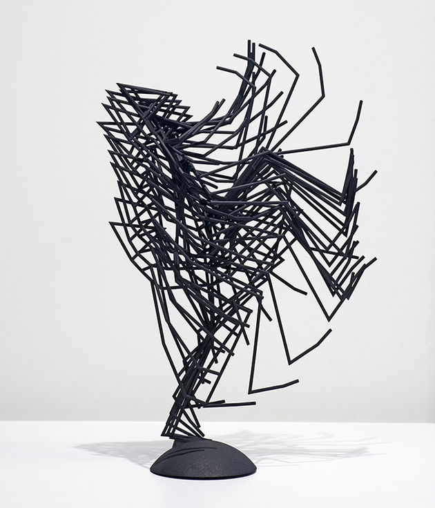 As esculturas, em latão e polímero combinados, oferecem retratos tridimensionais do movimento, capturados e analisados, ilustrando a fusão entre tecnologia e expressão artística. A mostra apresenta também uma série de pinturas, Dancing on the Paper (2017-2024), em que o corpo da artista explora o papel, da mesma forma que explora o espaço da performance. Essas pinturas são transmitidas por vídeos, que mostram a elaboração do processo por meio de sons rítmicos.