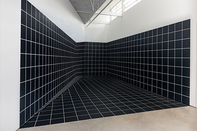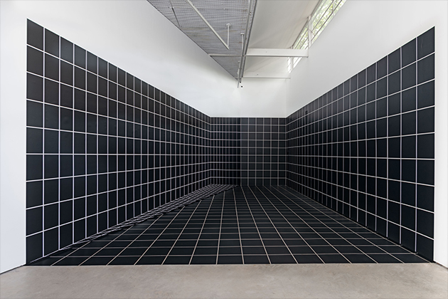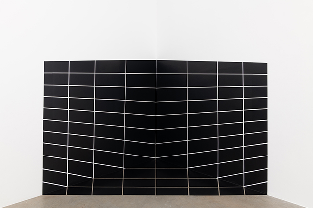 A exposição GRAPHOS, de Regina Silveira, apresenta a obra homônima, concebida inicialmente em 1991, alguns anos antes da sua primeira exposição na Luciana Brito Galeria, em 1998. Esse resgate histórico de uma obra não realizada representa os quase 30 anos de parceria e reflete a evolução da pesquisa de Regina Silveira, que sempre esteve à frente nos estudos sobre percepção e representação visual, acompanhando os novos recursos da tecnologia na arte. A instalação site specific “GRAPH” foi inicialmente pensada segundo parâmetros das regras gráficas analógicas para corrigir as perspectivas do espaço arquitetônico da Storefront for Art and Architecture, em Nova York (EUA), durante residência da artista pela bolsa John Simon Guggenheim Foundation (1991). Embora contemplada, as regras de preservação do prédio da Storefront não permitiram que o projeto fosse executado, já que naquela época a artista pintava as obras diretamente na parede.