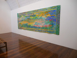 Das telas de intrincadas construções cromáticas, “Aguapé” e “Igarapé” emanam tons amarelos, azuis e verdes que remetem às paisagens brasileiras que beiram rios e mares.