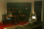 Desorientando completamente a percepção espacial de quem entra na galeria, o trabalho faz com que o visitante se veja num simulacro de um consultório de psicanálise – tanto no "papel" de paciente como no do profissional –, mas de maneira fantasmagórica, com o reflexo criando uma imagem que quase some sobre o fundo.