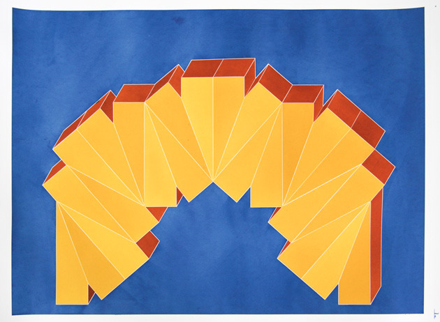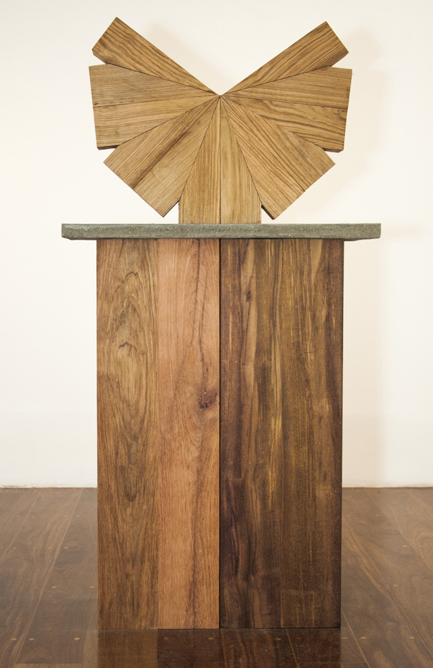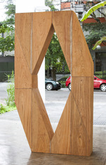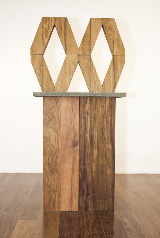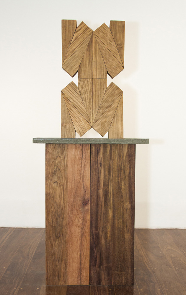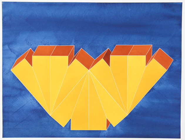 A série de esculturas Les Prismatiques (The Prismatics) condensa essas características. São dois trabalhos em madeira, cada qual formado por módulos maciços de Jatobá (Hymenaea courbaril). Essa é a primeira vez em que sua pesquisa envolve uma madeira típica do país a ser apresentada. Para cada uma das esculturas, módulos são assentados diferentemente para criar combinações específicas, numa alusão ao processo lúdico dos jogos de construção, em particular o Tangram, o antigo quebra-cabeça chinês. Já os módulos, foram inspirados no formato da ‘cunha’ (peça de madeira cortada em ângulo agudo utilizada para apertar ou ajustar objetos, como o chassi dos quadros). Les Prismatiques (The Prismatics) brinca com a uniformidade do corte da madeira e a randomicidade das suas fissuras naturais. Acompanhando as esculturas, os desenhos apresentam outras combinações para os módulos, como uma continuação lógica natural de Les Prismatiques (The Prismatics), mas numa técnica diferente. Os desenhos mostram um pequeno fragmento das milhares de possibilidades de montagem dos módulos, por meio de cores e perspectivas que remetem às pinturas renascentistas italianas.