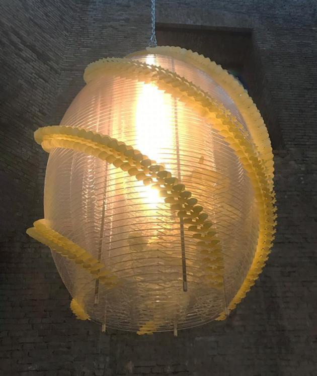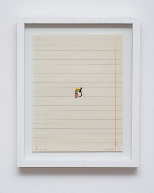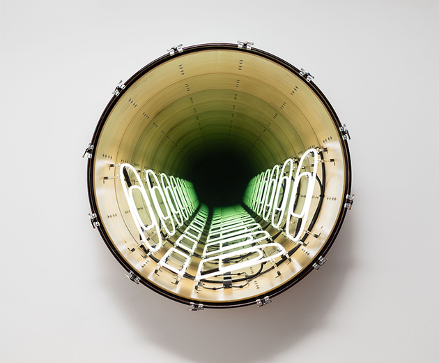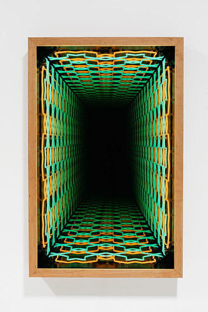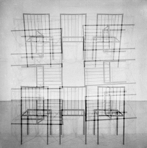 Com mais de 60 anos de carreira, Regina Silveira sempre esteve à frente nas pesquisas sobre percepção e representação visual, principalmente por meio de estudos sobre os princípios de perspectiva e tridimensionalidade. Obras da série “In Absentia” (déc. 1980) mostram como a artista já manipulava graficamente os códigos de representação em perspectiva, neste caso simulando objetos ausentes. Os estudos históricos dessa série ilustram as etapas percorridas pela artista até seu objetivo final, que na época não contavam com a ajuda tecnológica e eram realizadas com pincel e tinta no ambiente. Uma das versões apresentadas na feira, a “M.D.” (Marcel Duchamp), foi inclusive apresentada ao público em 1983, durante a 17a Bienal de São Paulo. Outra obra importante de Regina Silveira, “Quimera”, teve sua primeira versão mostrada na Galeria Luciana Brito em 2004, em exposição paralela à edição do mesmo evento. Trata-se de uma instalação que representa a habilidade da artista em brincar com a nossa percepção, através de um processo metalinguístico que envolve luz e sombra. O conjunto da obra de Regina Silveira pode ser visto atualmente no La Virreina Centre de La Imatge, em Barcelona.