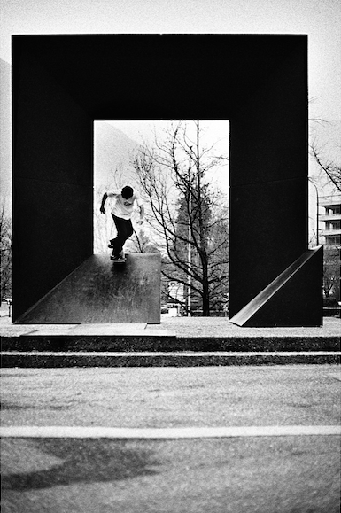 Ganhador da décima edição do Ricard Prize, o artista francês Raphaël Zarka apresenta na mostra seu trabalho Riding Modern Art uma coleção de fotografias reunidas nos últimos anos em que skatistas se apropriam, com manobras, de esculturas Modernas dispostas em espaços públicos.